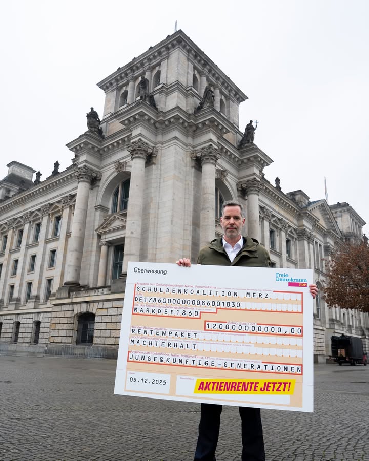500 Milliarden Euro neue Schulden für Investitionen in Straßen, Brücken, Krankenhäuser, Digitalisierung und mehr. So wurde es allen von der Regierung Merz versprochen. Die Realität zeichnet ein anderes Bild: Das CDU-geführte Berlin will jetzt für 3,2 Milliarden Euro neue Bäume pflanzen… Das muss gestoppt werden. Schluss mit Schulden für Wahlgeschenke zu Lasten der jungen Generation, Schluss mit dieser Zweckentfremdung!